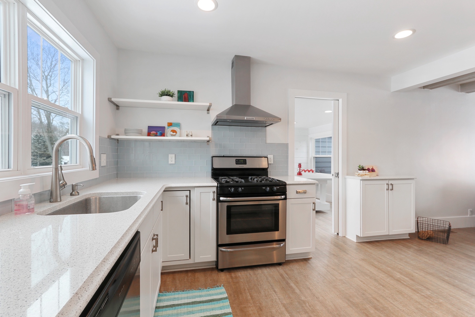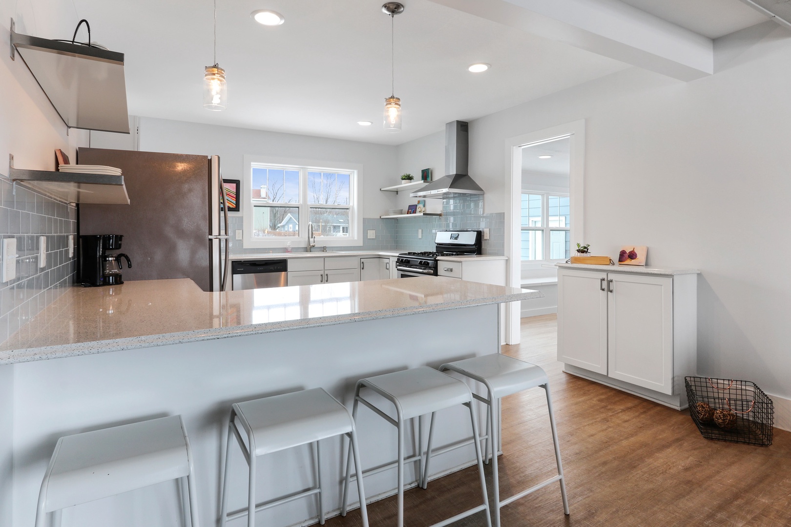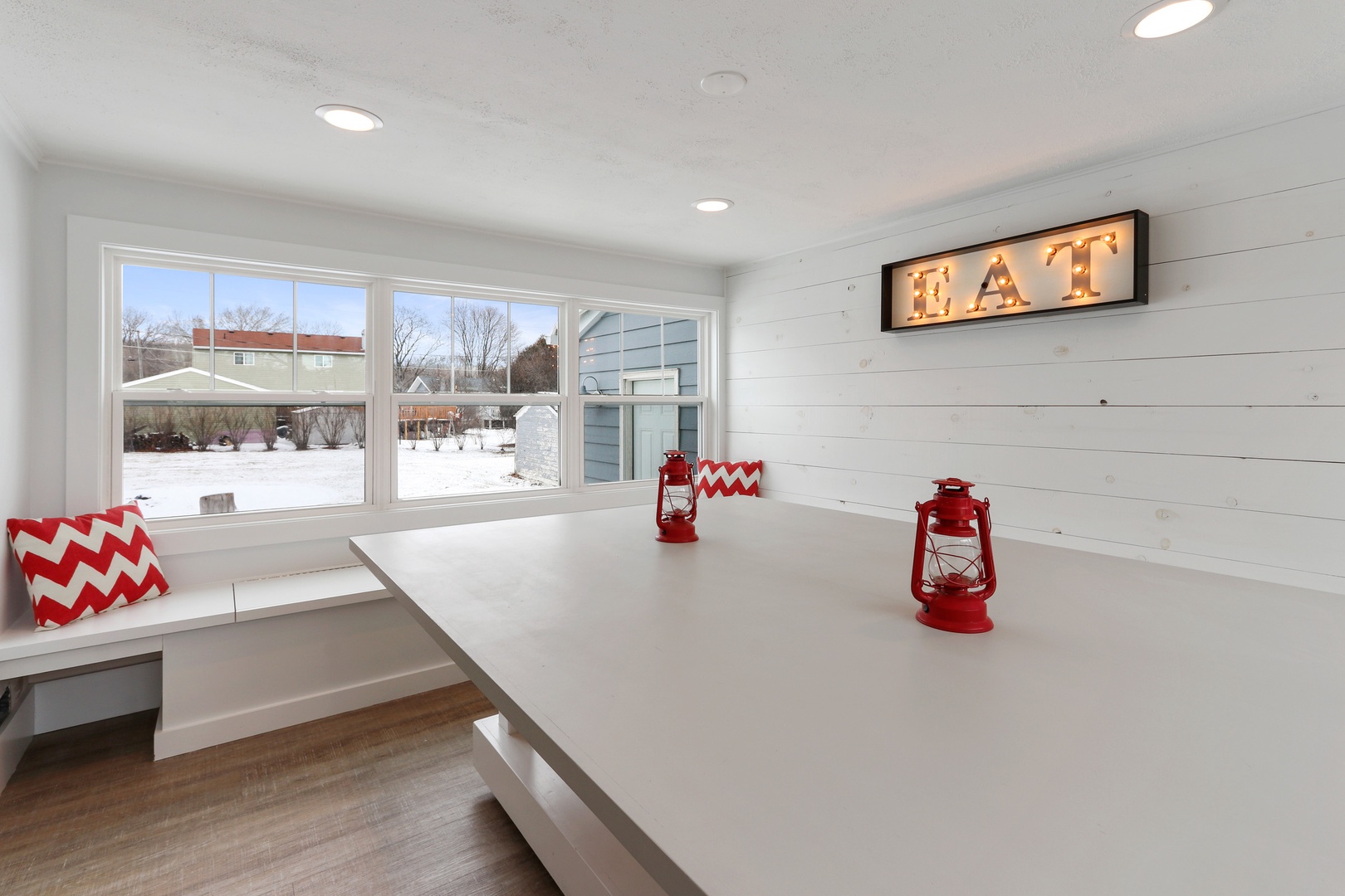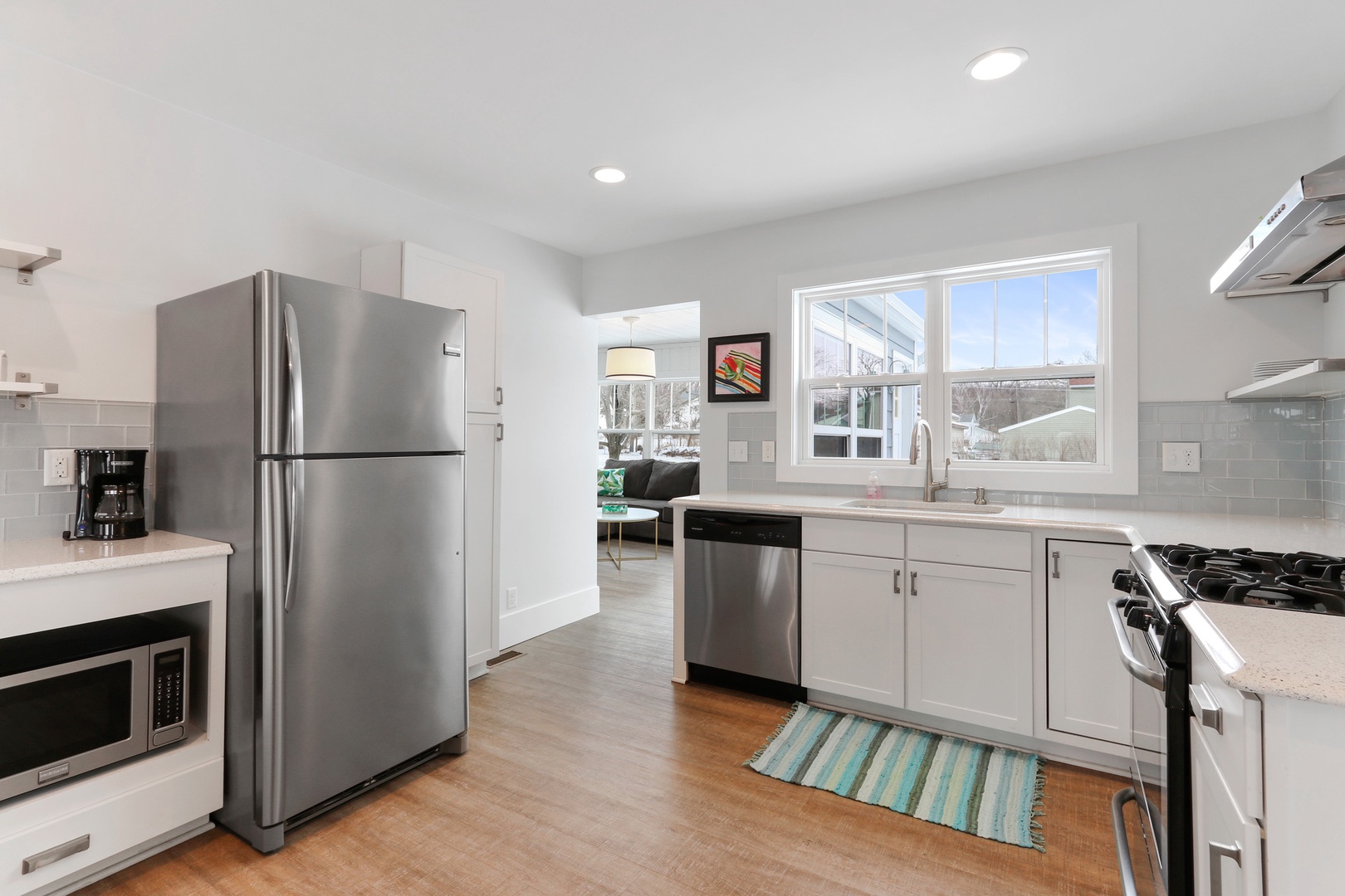 Beautiful and cozy cottage with open floor plan to welcome family and friends for a Wisconsin vacation. Newly remodeled with wood flooring, new kitchen, cottage-casual and stylish seating for your group to enjoy and relax. Wood-burning fireplace will warm you after a day of ice skating or lake swimming. (Plan to pick up wood prior to your stay). SMART TV room for movie night or game day - Go Packers and Bears! 2 Queen Bedrooms on the 1st floor with a Hallway Full Bathroom. Stairs up to the 2nd floor with 2 more Queen Bedrooms (with a single/twin bed in each bedroom on the 2nd floor) with a second Hallway Full Bathroom - a perfect fit for 2 families or mixed-age groups.