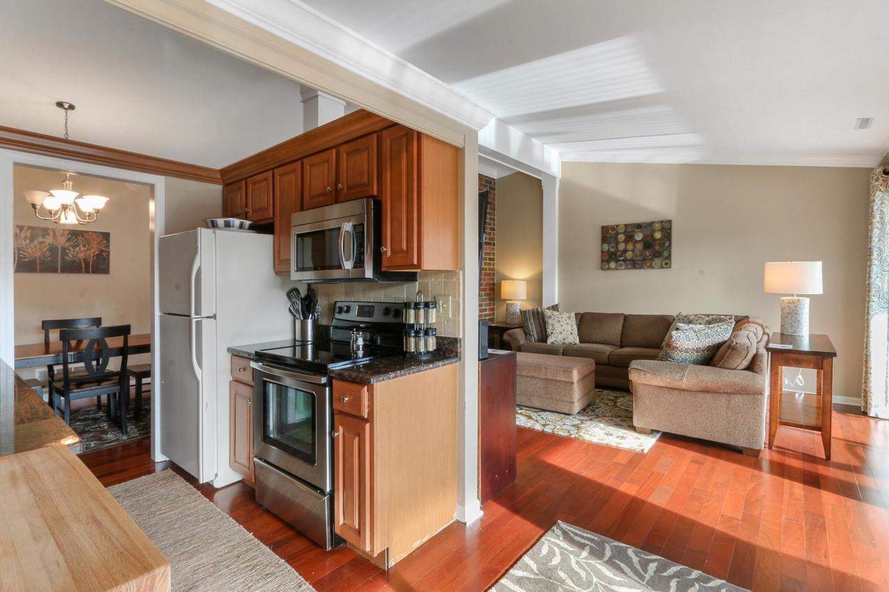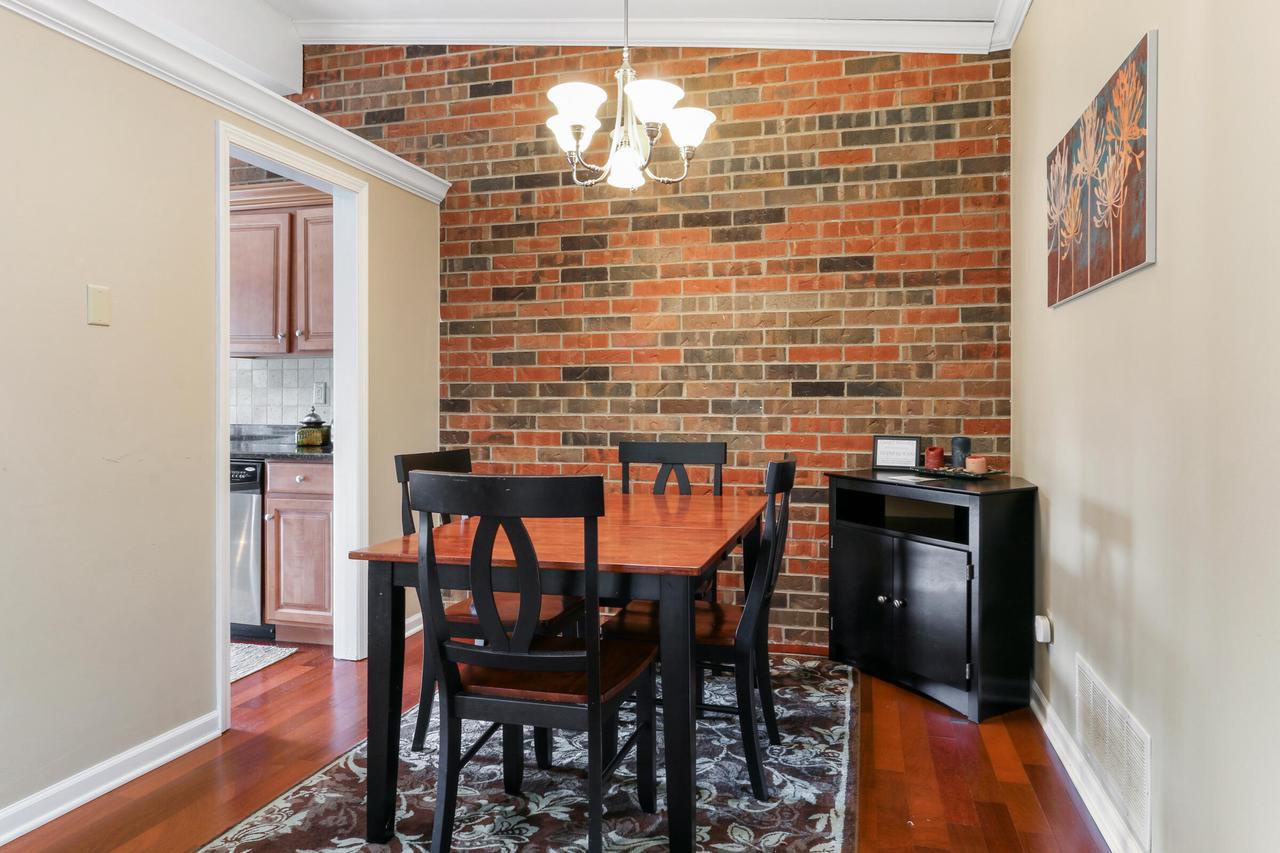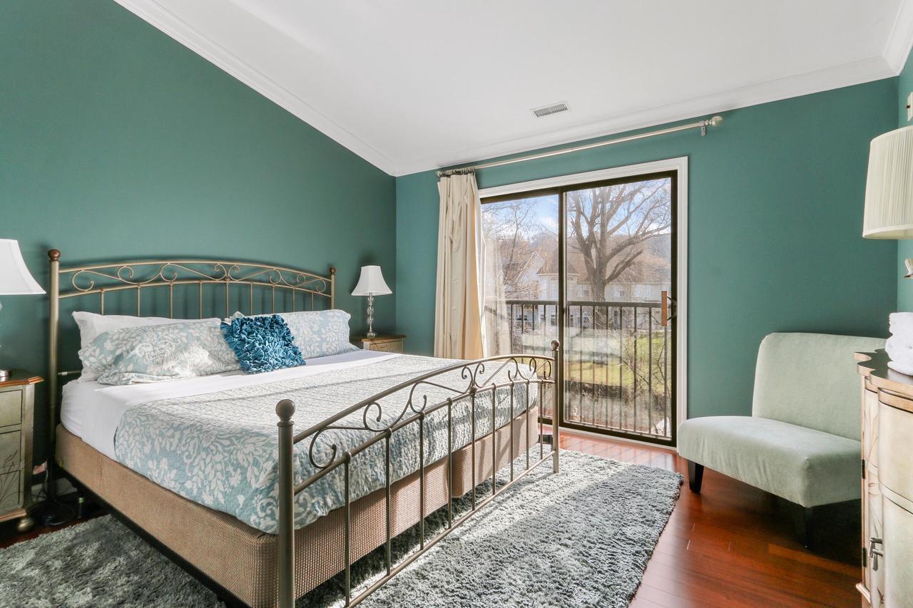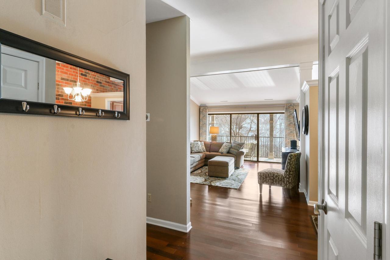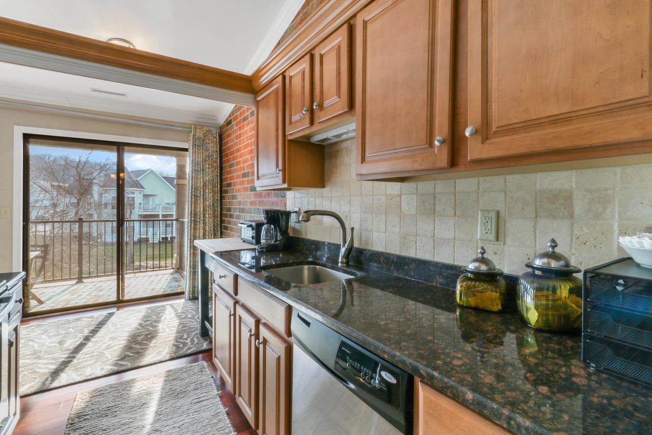 The great room with vaulted ceilings includes the kitchen and dining areas- perfect for entertaining and relaxing! Lovely gas fireplace and comfortable seating for streaming your favorite shows on the Smart TV. Enjoy a BBQ on the electric grill. Sliders from both the master and great room open up to a large balcony overlooking the natural landscape and creek- great for warm summer mornings/nights, taking in crisp fall hues, or looking out at a winter wonderland!