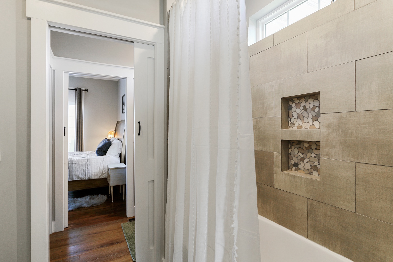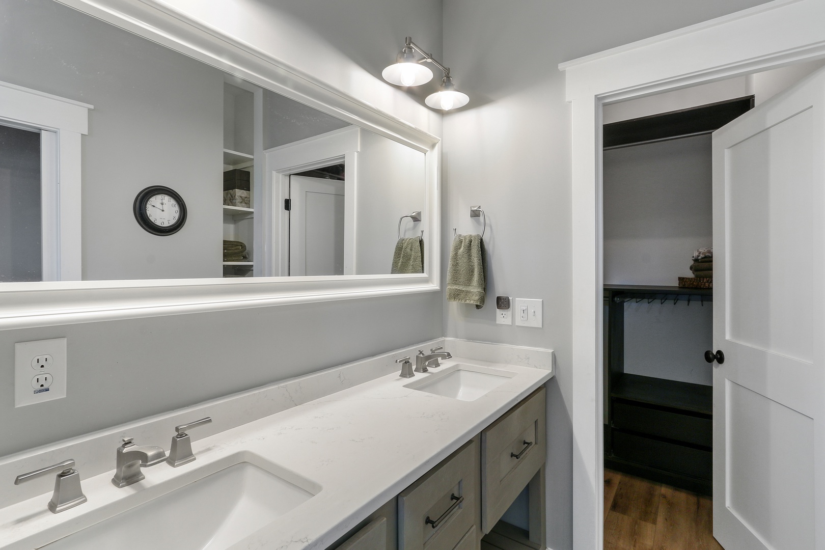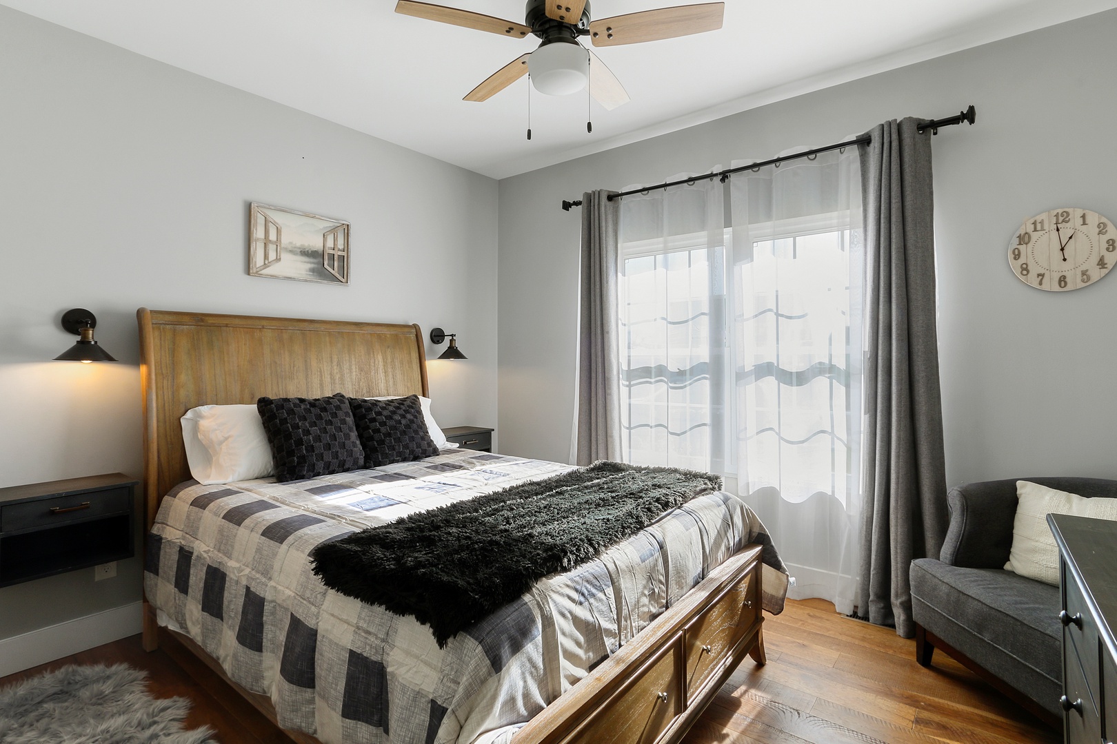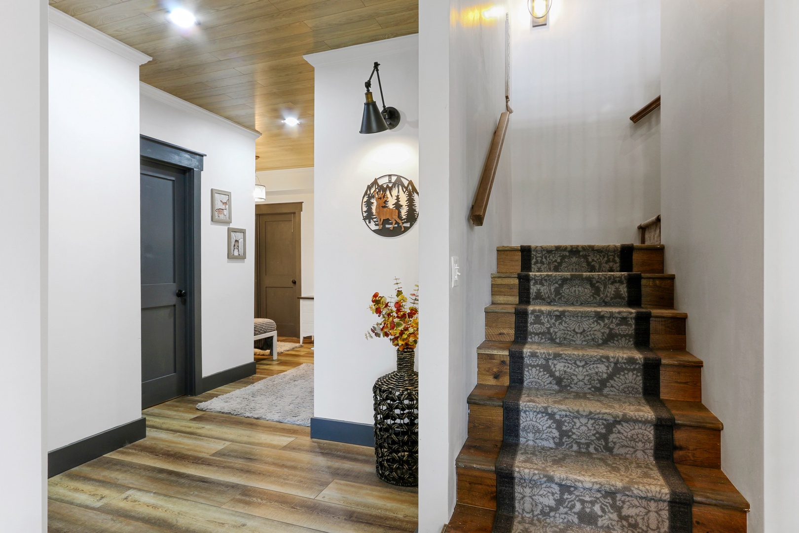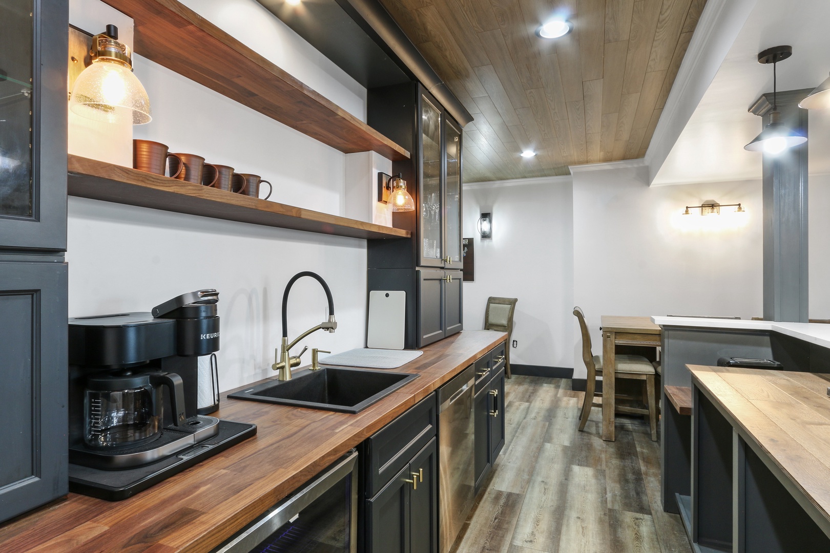 The luxurious primary suite (K) features a tray ceiling, fireplace, a large walk-in closet, and a deluxe bath with a jacuzzi tub and walk-in shower- a true relaxation zone. Two additional bedrooms (Q) on the main floor are adjoined by a convenient jack-and-jill bathroom, while the lower level hosts a secondary master suite (K), a kids room (no door, built-in bunk + twin), and a final bedroom (Q) with a shared attached bath. The proximity of a full bathroom relative to any given bedroom in this home is one of the attributes that sets it apart and makes vacationing at Lookout Lodge a breeze.