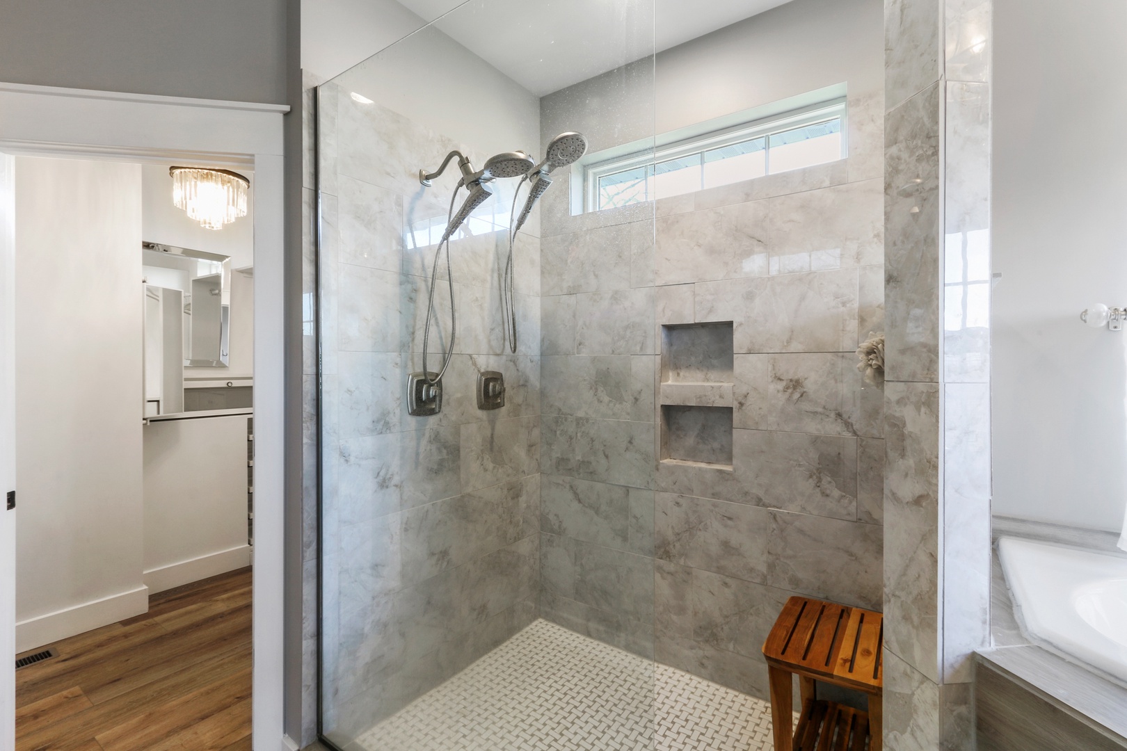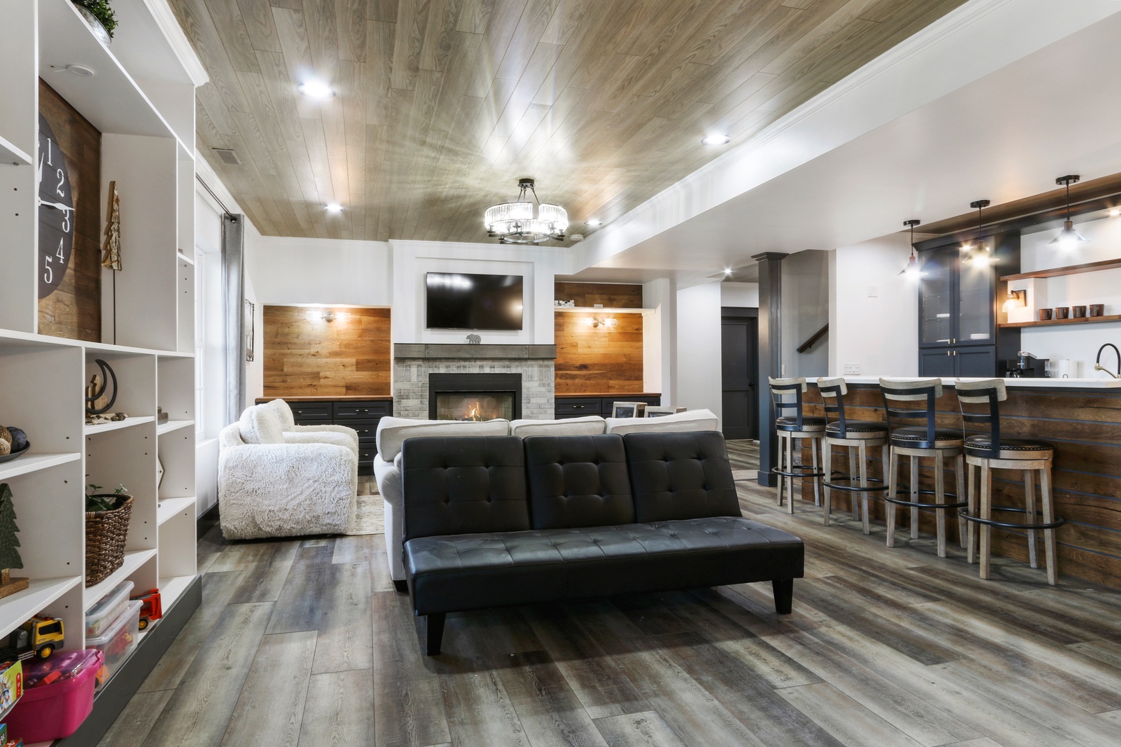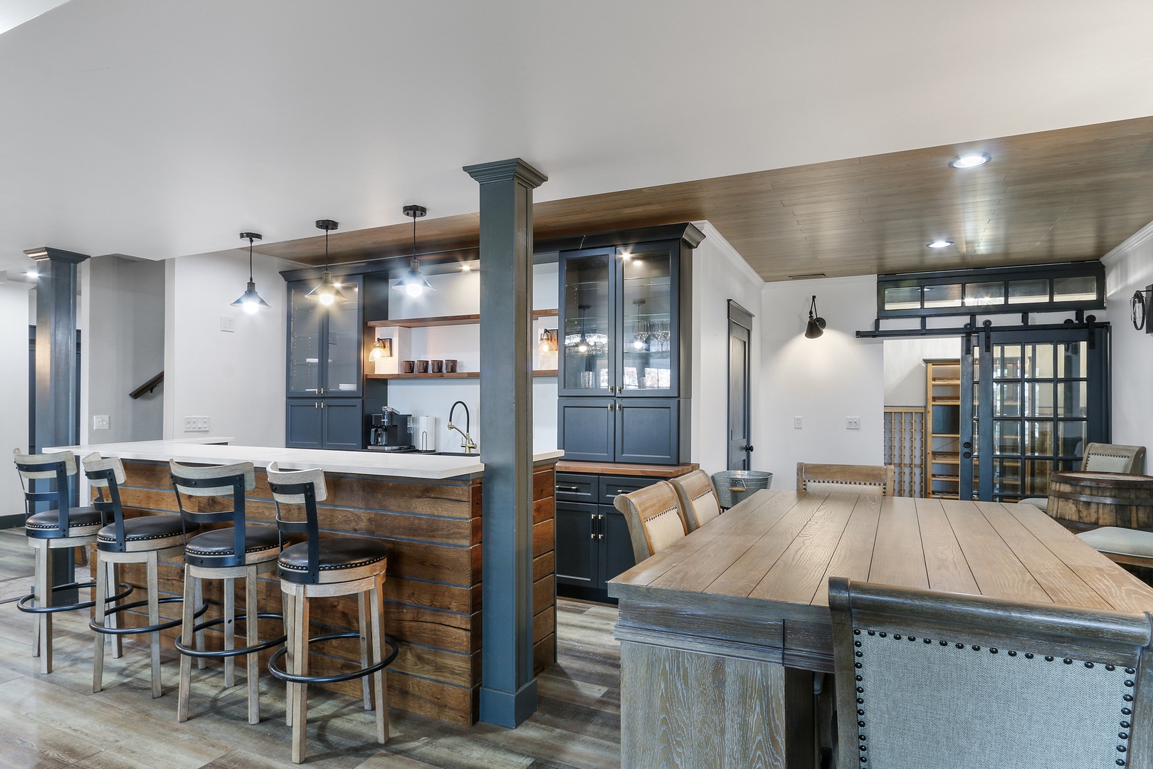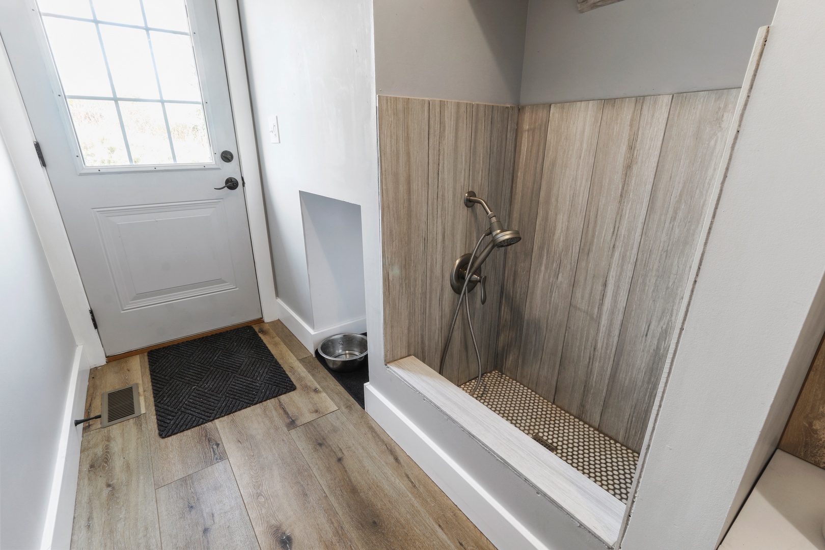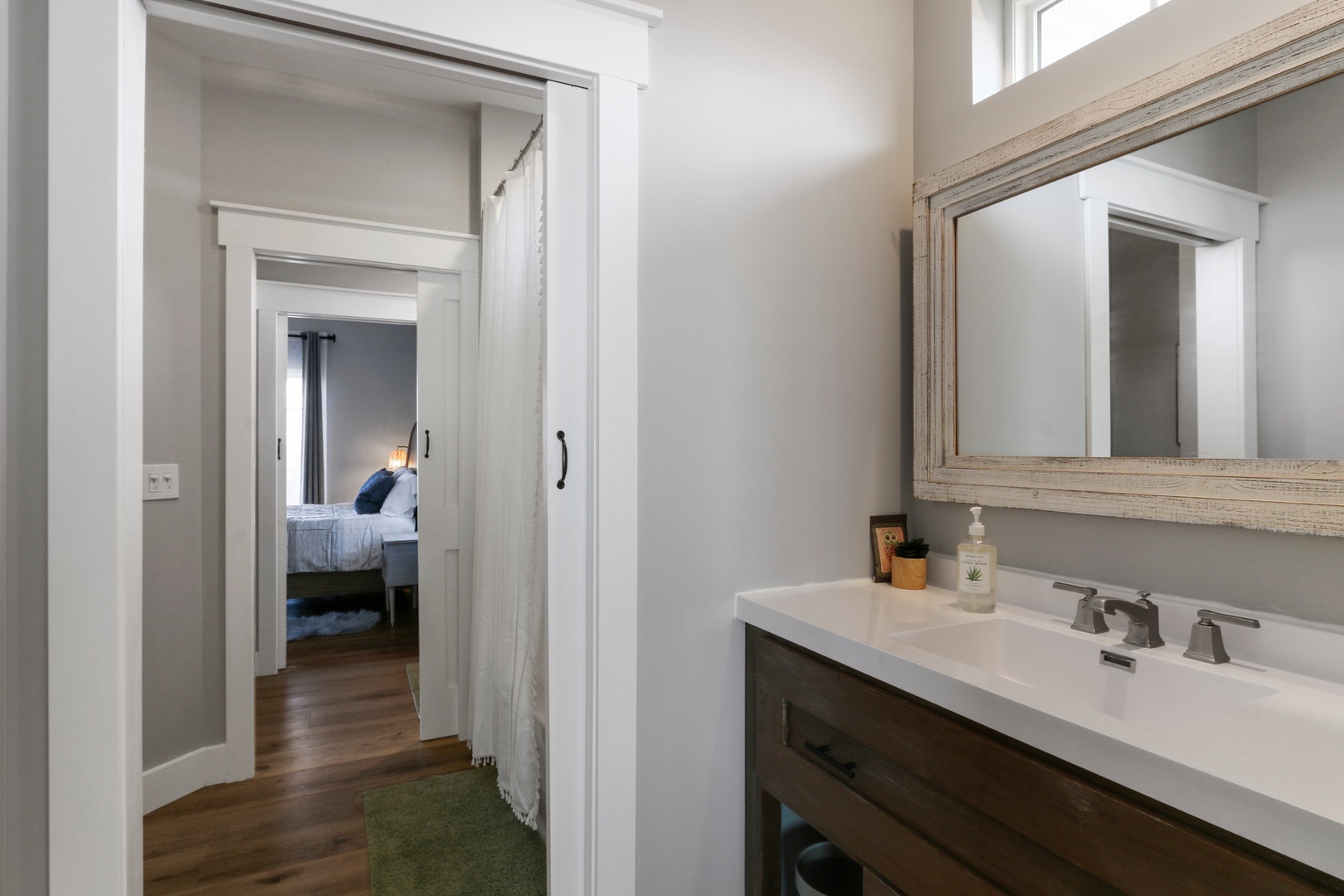 The luxurious primary suite (K) features a tray ceiling, fireplace, a large walk-in closet, and a deluxe bath with a jacuzzi tub and walk-in shower- a true relaxation zone. Two additional bedrooms (Q) on the main floor are adjoined by a convenient jack-and-jill bathroom, while the lower level hosts a secondary master suite (K), a kids room (no door, built-in bunk + twin), and a final bedroom (Q) with a shared attached bath. The proximity of a full bathroom relative to any given bedroom in this home is one of the attributes that sets it apart and makes vacationing at Lookout Lodge a breeze.