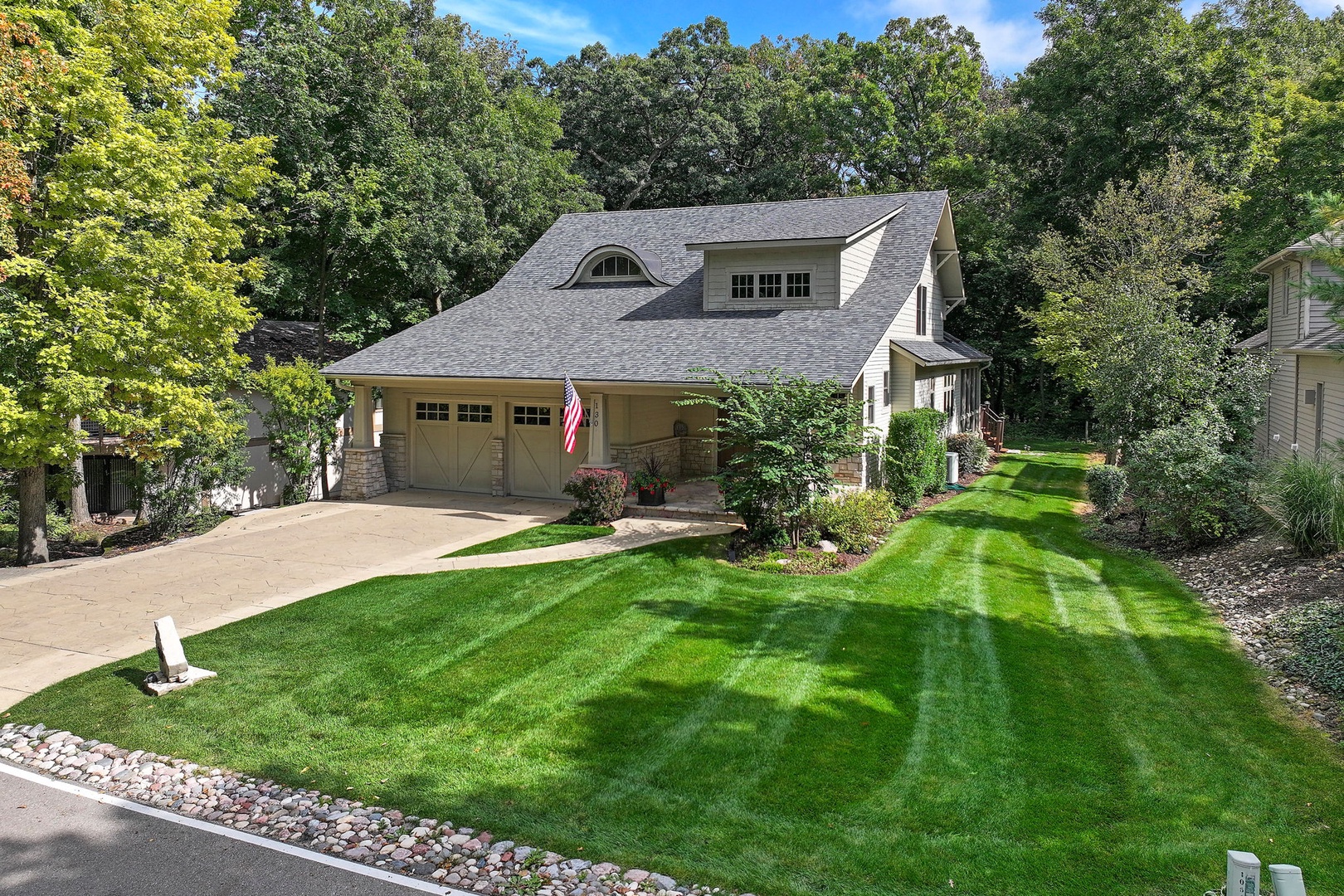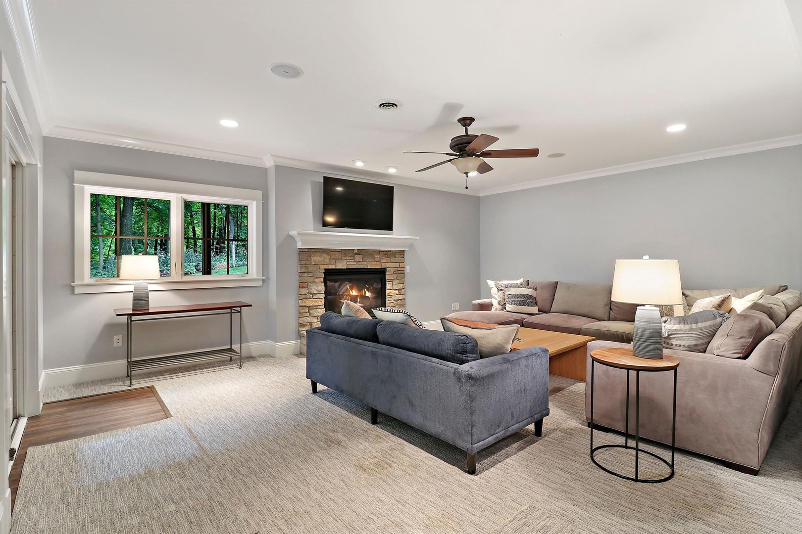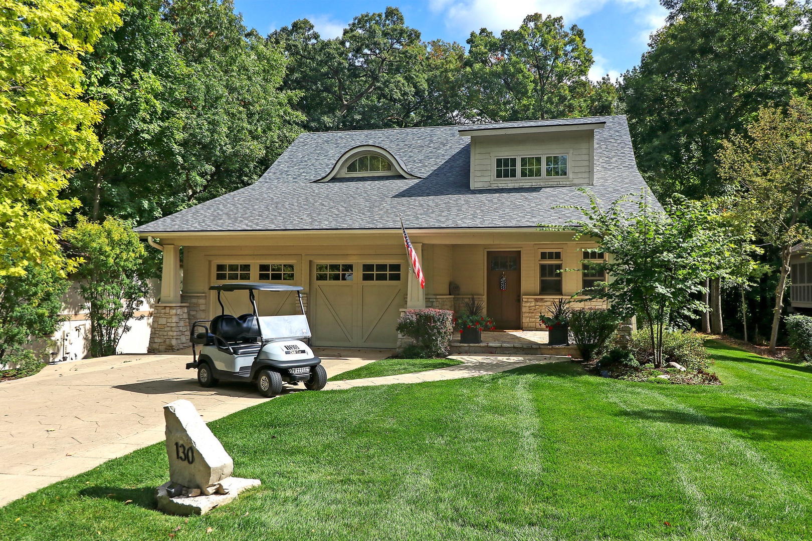 Step into a newly renovated space, featuring a brand new kitchen and a two-story family room. The backyard boasts a serene view of a deep wooded lot- it is very common to see a family of deer passing through! Stay cozy with three fireplaces and indulge in relaxation with a soaking tub in the first-floor master bedroom. Gather around the large fire pit for nighttime s'mores. Drive the golf cart to the beach, lake, or clubhouse for added convenience.