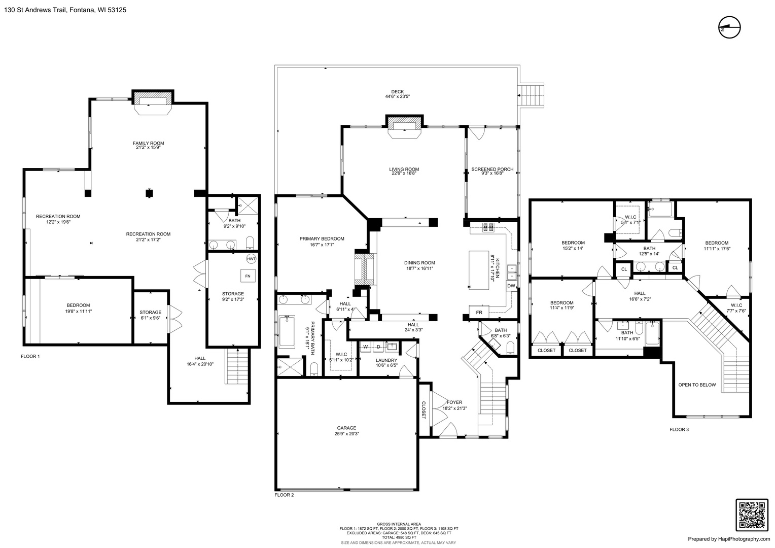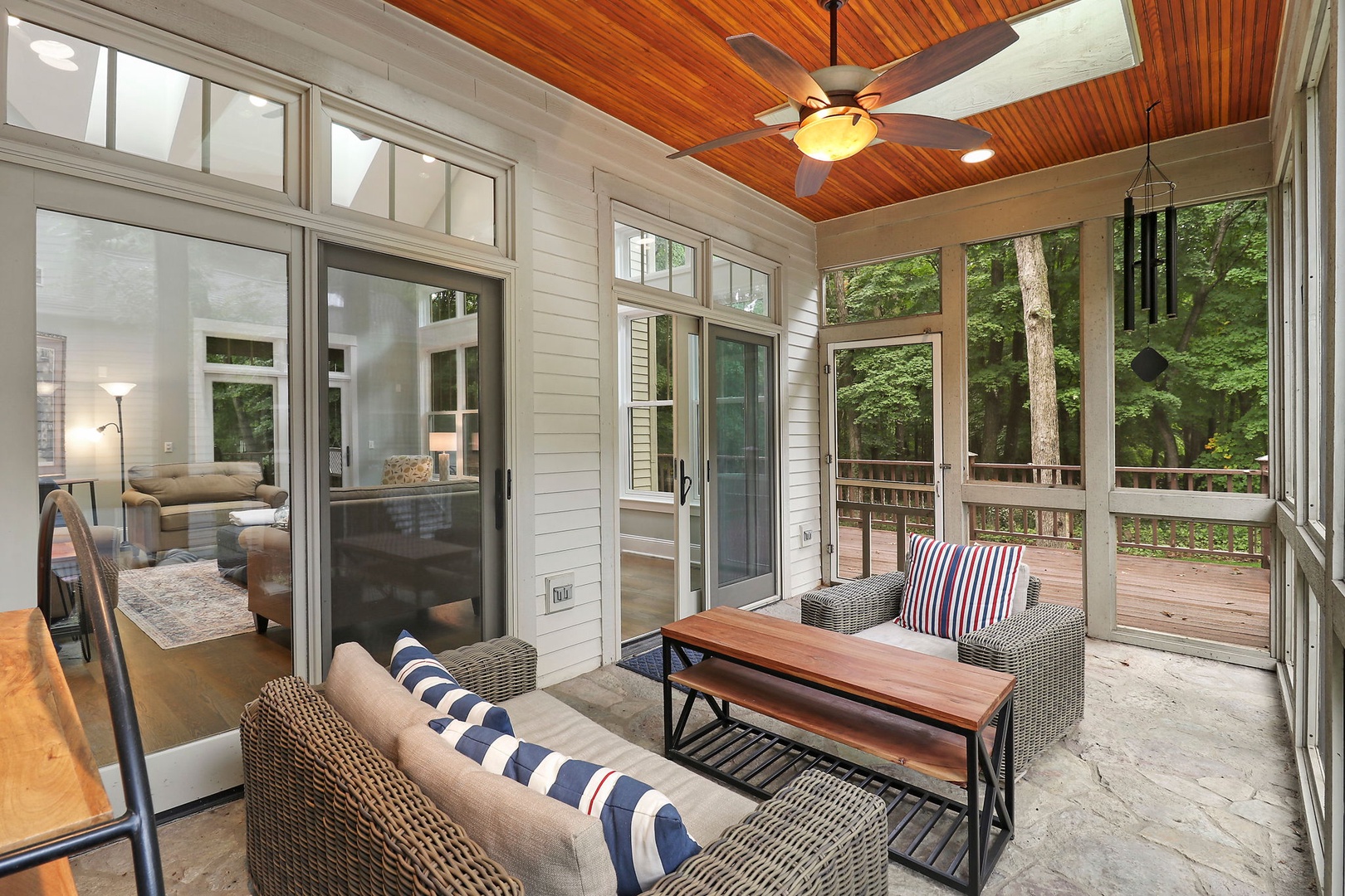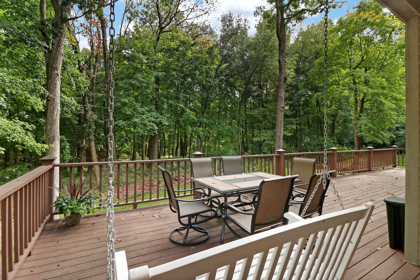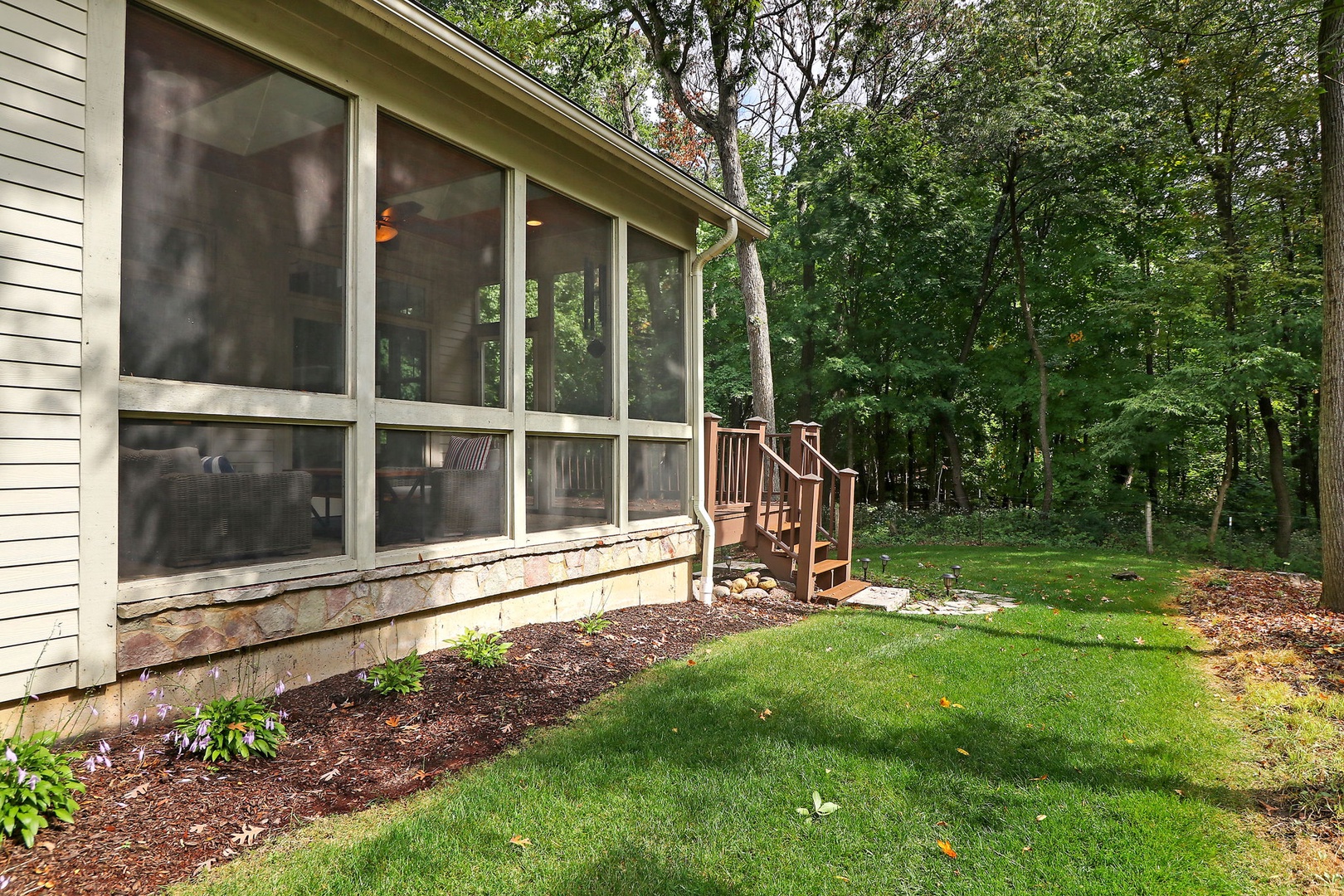 Step into a newly renovated space, featuring a brand new kitchen and a two-story family room. The backyard boasts a serene view of a deep wooded lot- it is very common to see a family of deer passing through! Stay cozy with three fireplaces and indulge in relaxation with a soaking tub in the first-floor master bedroom. Gather around the large fire pit for nighttime s'mores. Drive the golf cart to the beach, lake, or clubhouse for added convenience.