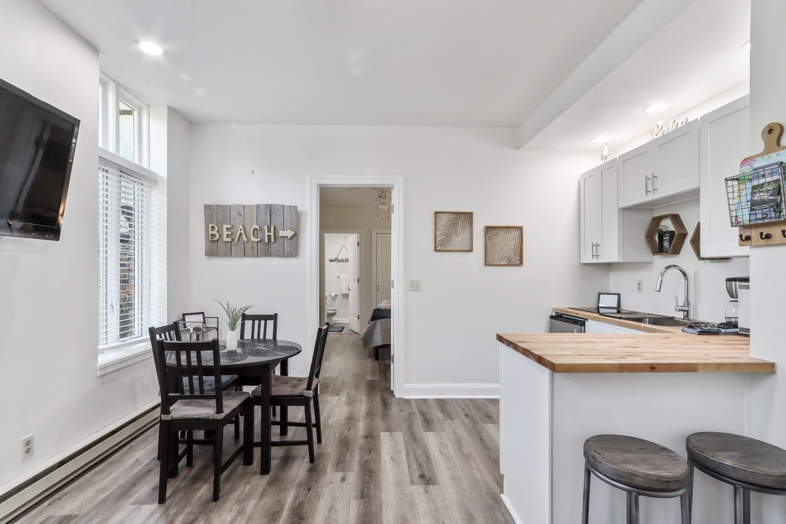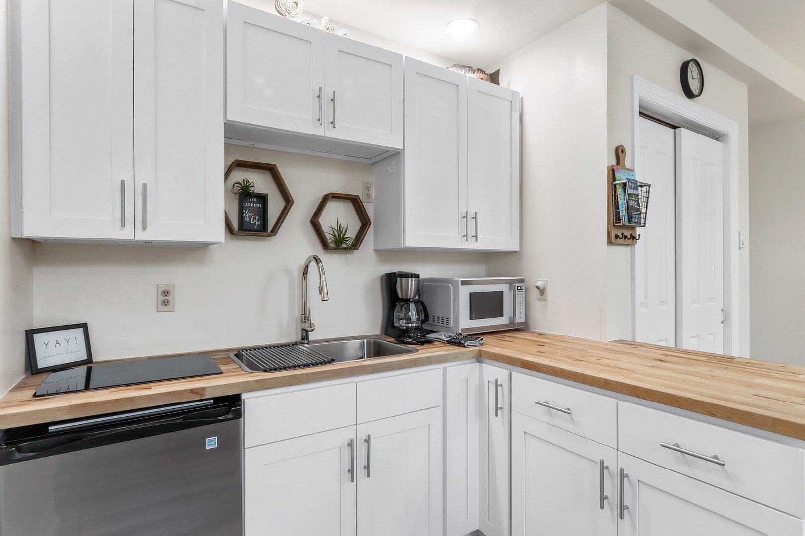 This ideally situated first-floor unit has been face lifted with today's traveler in mind. It features one bedroom (queen), an en-suite full bathroom, and an additional full-sized sleeper sofa- a perfect sleeping option for younger travelers. In total, the condo can comfortably accommodate four vacationers. While there is not an oven or dishwasher, guests will find a kitchenette-type set-up including an electric stove top, mini-fridge, toaster, and coffee maker. Strong internet and a TV with streaming capability also make this cozy unit perfect for extended stays or remote workers! Don't miss your chance to see why the feedback on the Hayloft has been so strong and guests return year-after-year.
