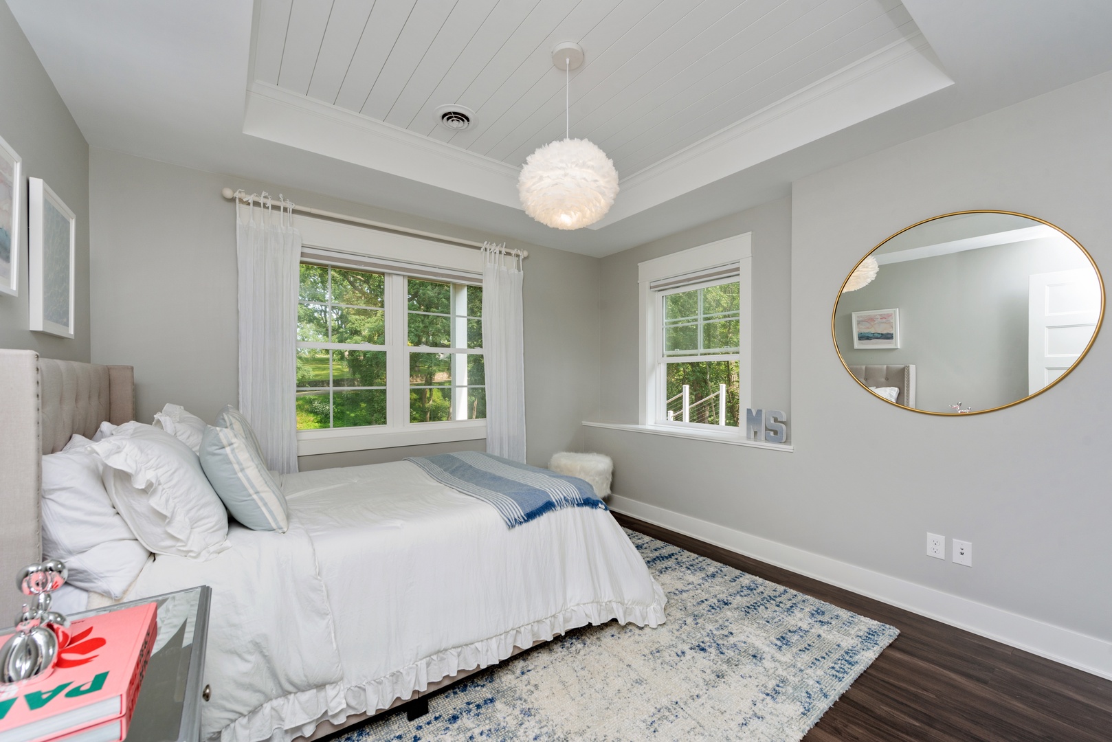 The coach house is equally impressive, with a sense of seclusion and privacy, and one bedroom, a full bath, and an office for remote workers. The French doors open up to a resort-like pool setting that has been professionally landscaped, complete with a built-in brick fire pit for cozy evenings.