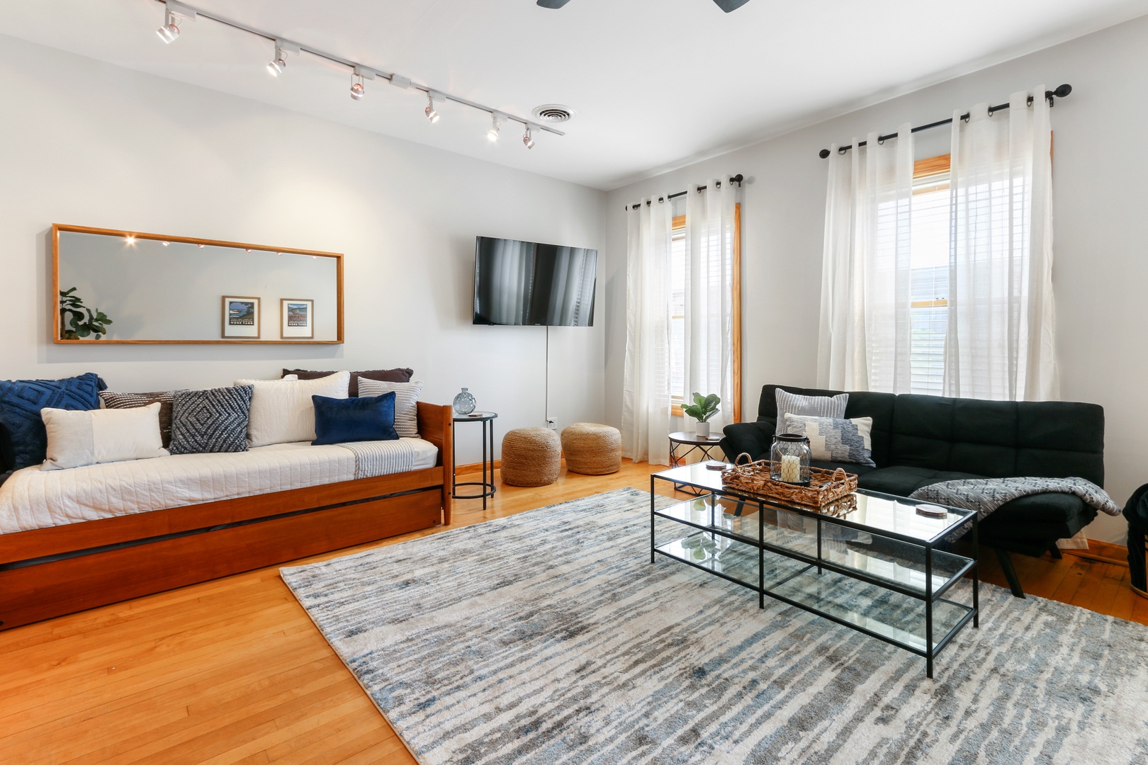 Suite 725 has been thoughtfully put together to provide you with everything you would need for you next Lake Geneva escape. Recently face-lifted, this sizeable second-story downtown unit features one bedroom (King), one full bathroom, a full kitchen, dining area and in-unit laundry. Two twin day beds, each with a pull out trundle, provide additional sleeping spots for guests. Easily take to the streets to enjoy the dining, nightlife and brick-and-mortar shopping scenes that have earned Lake Geneva the reputation of being among the finest resort towns the Midwest has to offer. Just one block from boat tours, the beach, and scenic walks on the majestic Geneva Lake shore path!