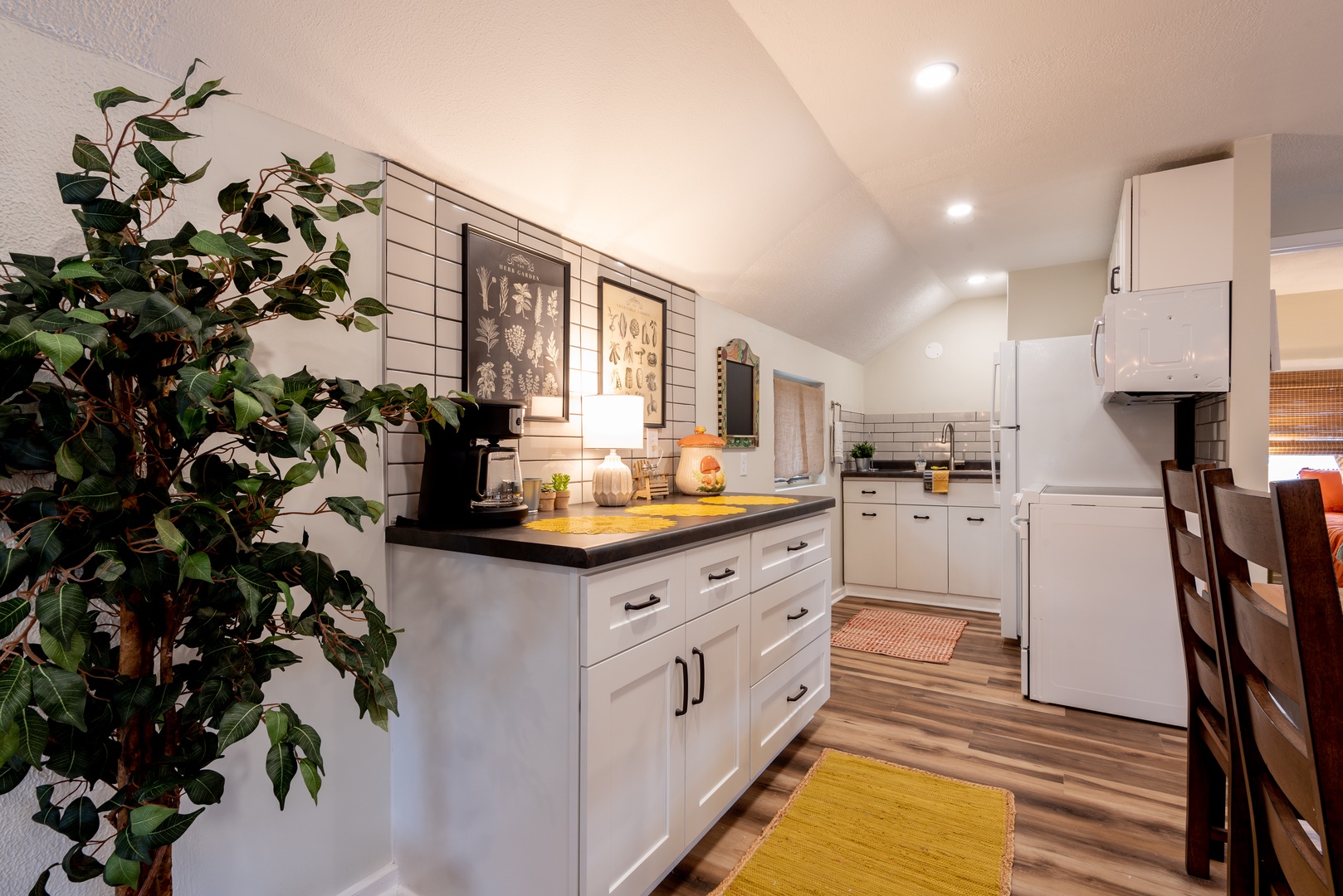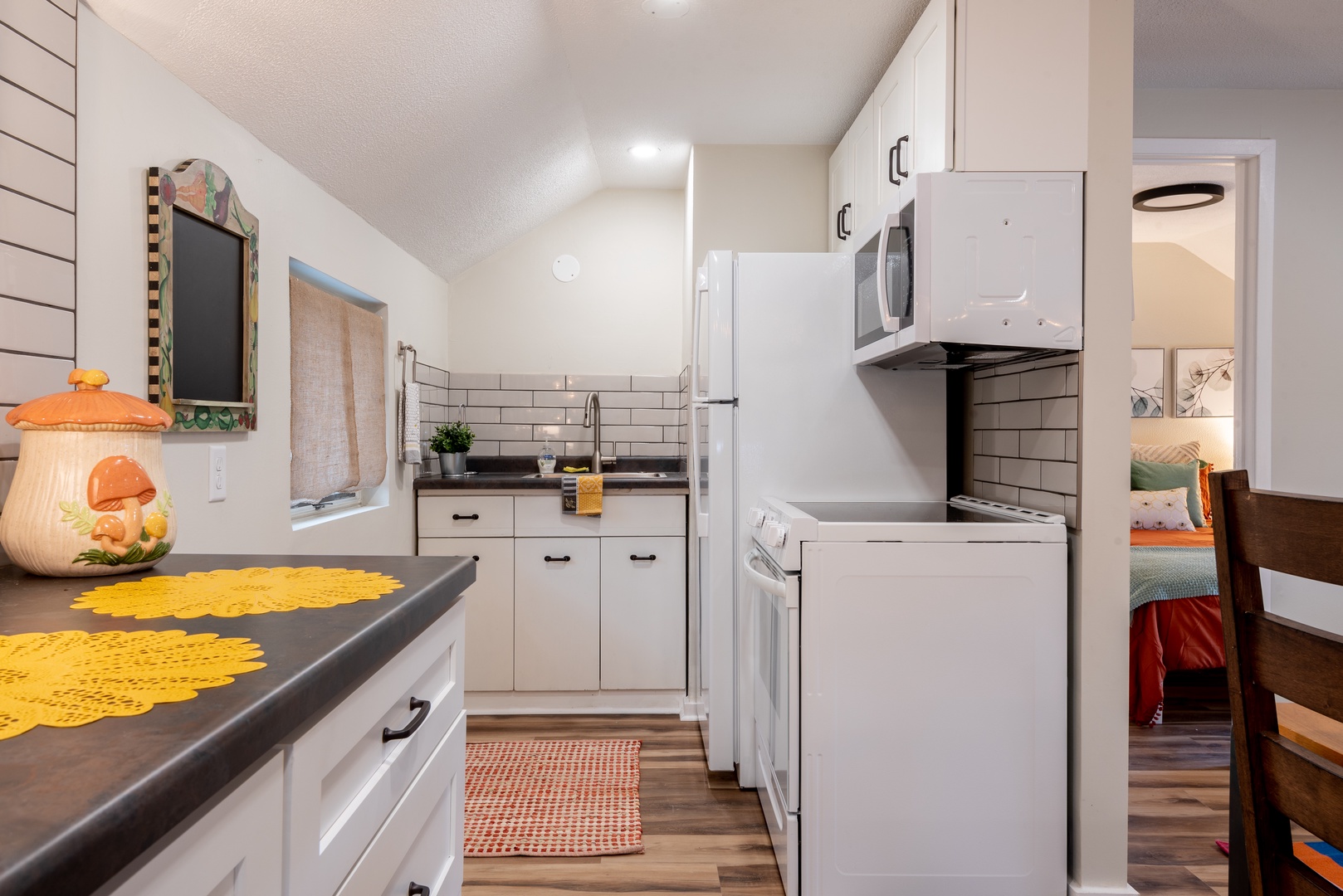 This carefully designed unit brings the outdoors in with all the comforts of home. Featuring 1 bedroom, 1 full bath, and two extra sleeping spots in the living area, this second level apartment accommodates 5 guests. BONUS: shared (with lower unit) backyard for yard games and grilling. The uniqueness and convenience of this fun spot will have you coming back year after year!