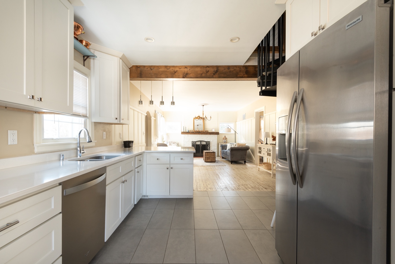 The updated Bay bungalow checks in at just shy of 2,500 square feet with 4 bedrooms (including a loft) and two full baths. The open-concept main floor, featuring the beautifully finished kitchen, provides ample space to prep meals and enjoy family time as you begin and end your vacation days. Bedrooms one and two can be found on the primary floor, each housing a queen bed with a full bath between them. Head up the spiral staircase to the loft to find two twin beds- a great option for younger travelers or those who don't mind a bunk mate! A fully finished basement with an entertainment space is sure to come in handy for families with kids. The final bedroom (queen) and a full bath can also be found in the basement for the late sleepers.