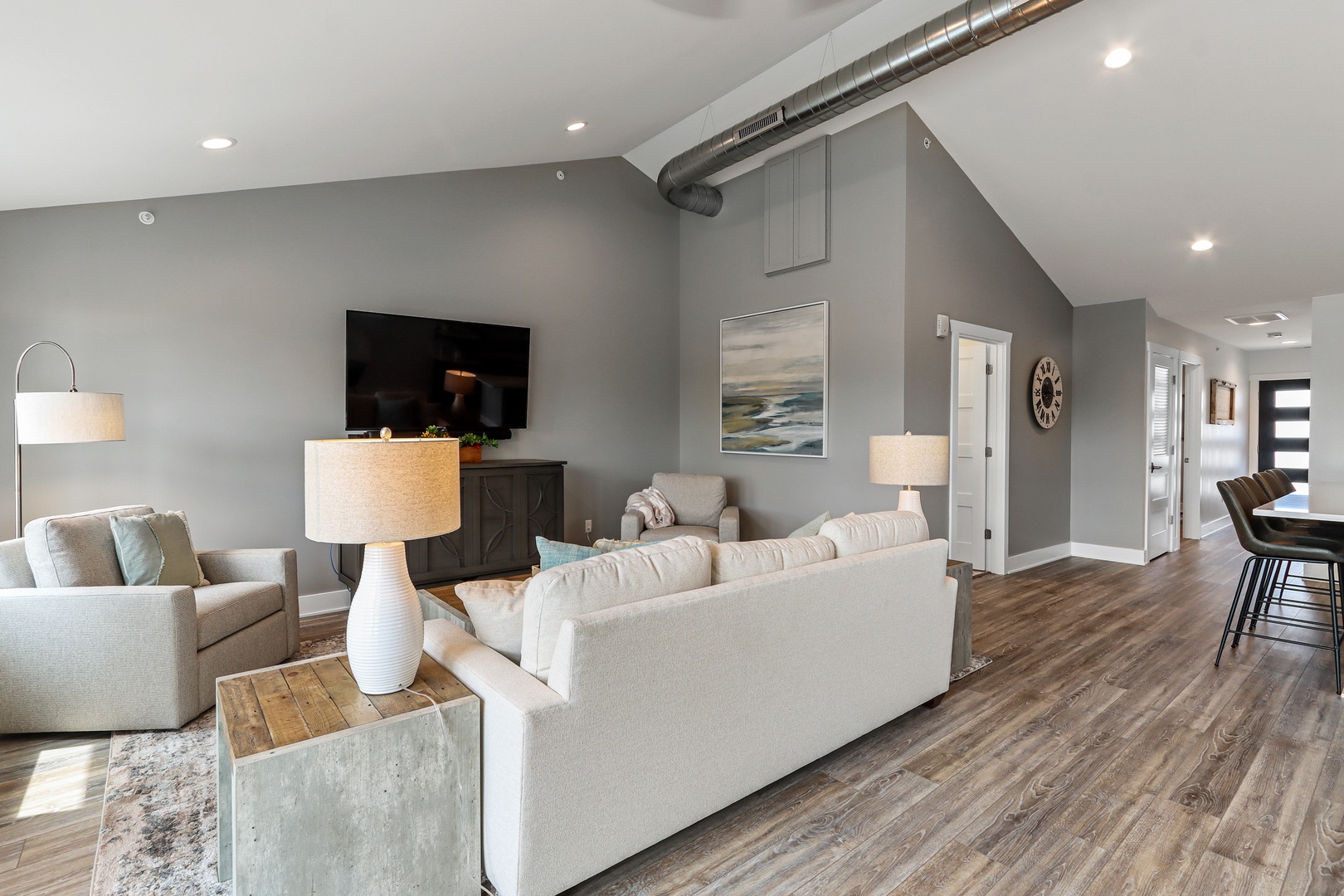 Welcome to the Lofts of Brick and Mortar- The upscale, comfortable answer for your next group getaway. Enjoy the convenience of three neighboring suites in the heart of downtown Lake Geneva. Park the car and forget about it- you are right in the center of all the action! The California Loft, City Loft, and Lake Loft, each featuring two bedrooms and one full bathroom, have been beautifully curated from floor to ceiling with the utmost detail. The respective units are spacious and open, giving guests the choice to congregate in one suite or retreat to their private abodes for a quieter experience. To make things even sweeter, each loft includes a large walk-out balcony (very rare in Downtown Lake Geneva), providing an excellent vantage point to people-watch with a glass of wine or enjoy a coffee on a summer morning. Book today for your next family reunion, friends getaway, or bachelor(ette) event!